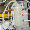 Foto: In deze zuiveringsreactor op laboschaal groeien micro-organismen op vaste dragers die in suspensie worden gehouden. |