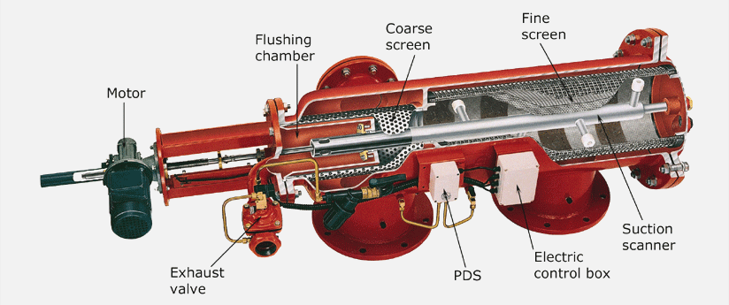 SAF-filters combineren de voordelen van schermfilters (groffilter voor zand), met de dieptewerking (meerlagig fijnfilterscherm in RVS) die nodig is voor het uitfilteren van organisch materiaal (algen, potgronddeeltjes). Automatische reiniging gebeurt met behulp van een ‘suction scanner’ aangedreven door een electromotor, waarbij het vuil spiraalsgewijs van de binnenkant van het scherm wordt afgezogen en afgevoerd. Dergelijke filters zijn complexer, duurder en er is toch enige kennis van hydraulische werking nodig.