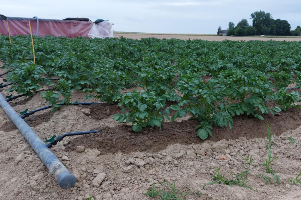 Figuur 1: Irrigatieproef te 2023 met druppelirrigatie in aardappel (Fontane).