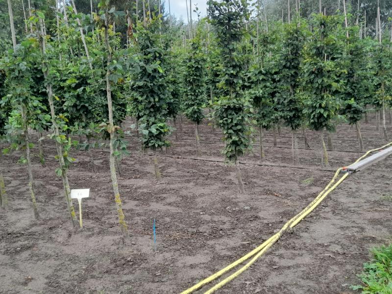 | Proefopstelling irrigatieproef in laanbomen (Carpinus betulus). |